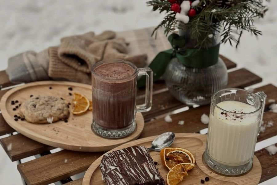 Pair your coffee shots with the delicious treats that go hand-in-hand with a good cup of coffee. A coffee mug accompanied by a slice of cake, a croissant, or a chocolate bar will make your viewers’ mouths water. This setup can work wonders for café and dessert shop promotions, as well as for foodie bloggers.