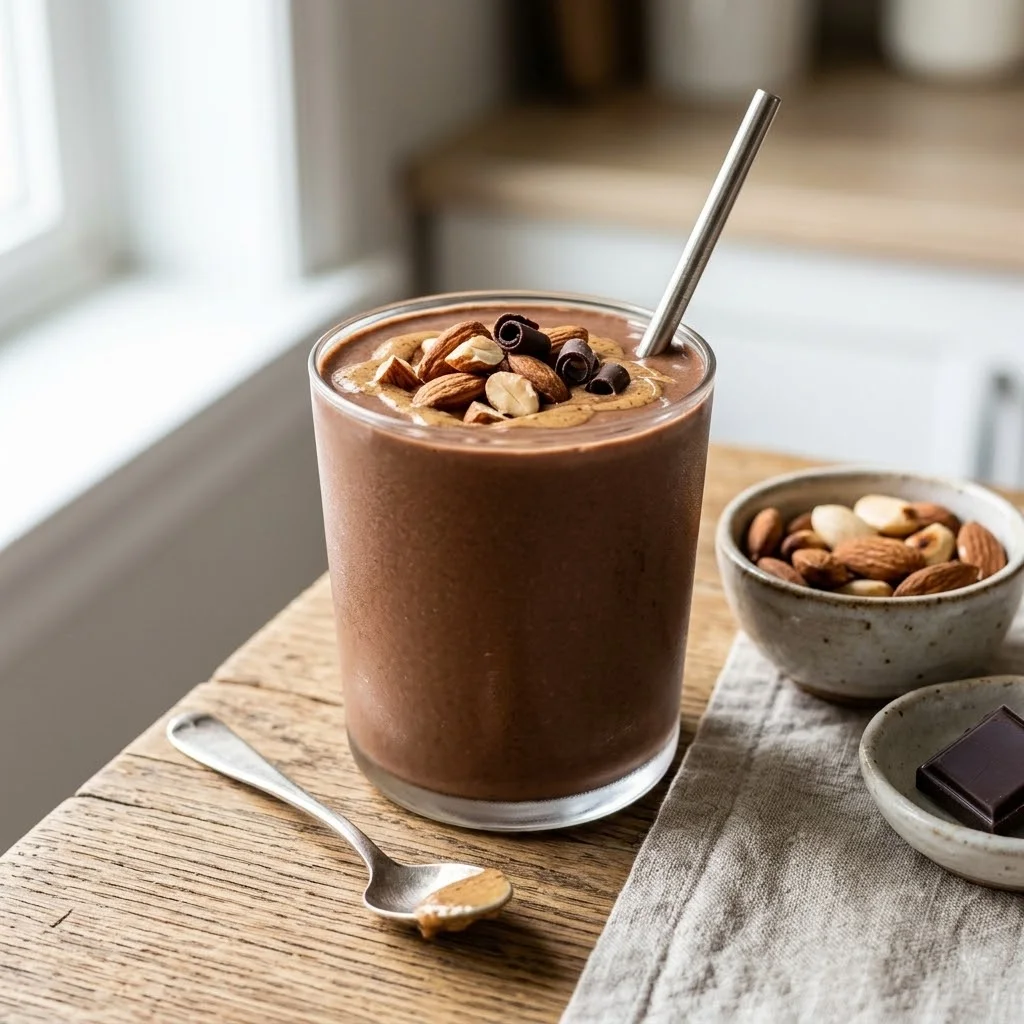 Craving something indulgent yet healthy? This chocolate protein smoothie with almonds offers the rich flavor of chocolate combined with the satisfying crunch of almonds. The chocolate flavor helps satisfy your sweet tooth, while the almonds and protein powder provide a filling and protein-packed base.