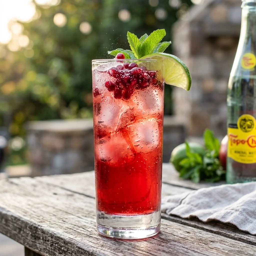 Pomegranate juice brings a burst of color and sweetness that’s perfect for a refreshing cocktail.