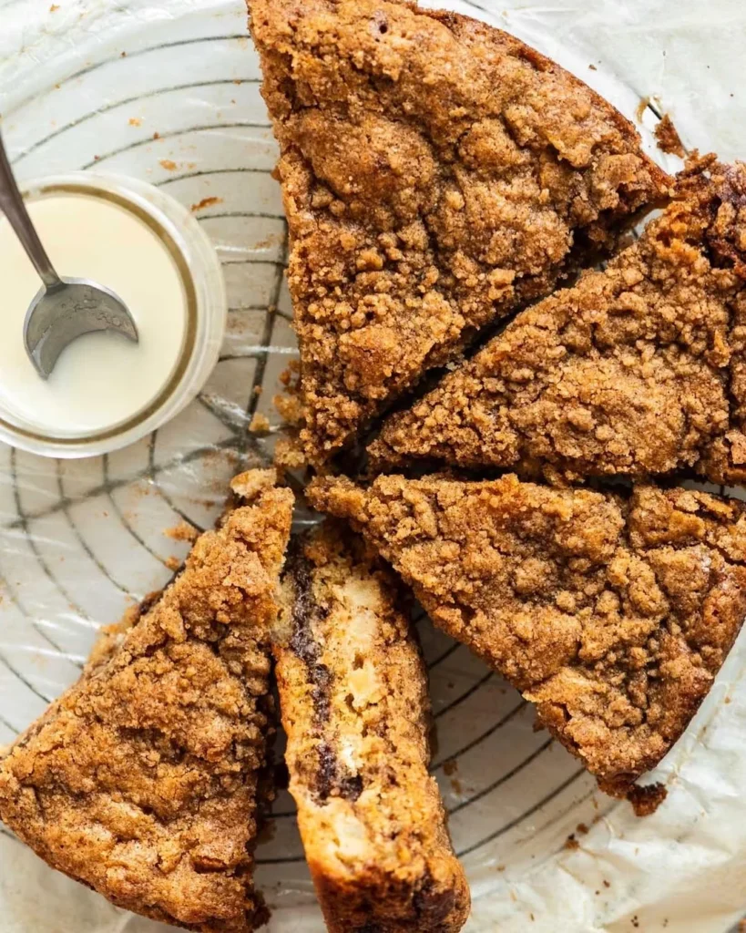 - For the streusel topping, combine brown sugar, flour, cinnamon, and butter. Mix until it forms a crumbly texture, then sprinkle evenly over the top of the batter.