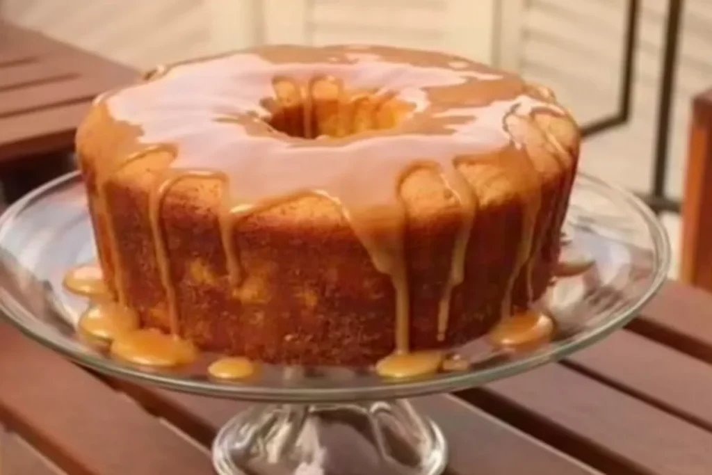 - Once the cake is done, remove it from the oven and let it cool slightly before drizzling the warm caramel sauce over the top.