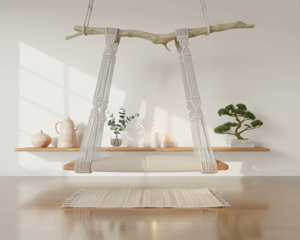 Boho Rope & Branch Hanging Shelves are the perfect blend of style, soul, and simplicity. They bring natural beauty into your yoga room without requiring a large budget or complicated tools.