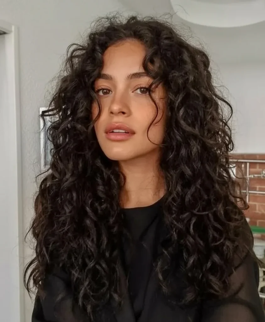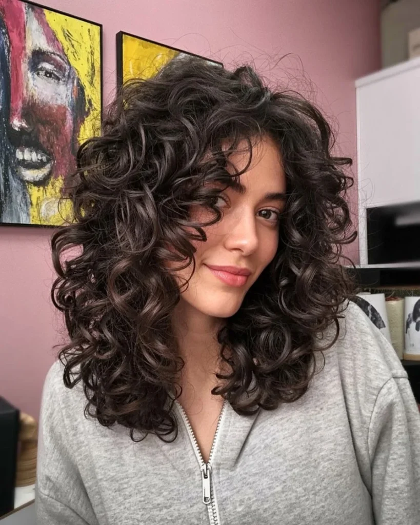 Toward the ends, longer layers keep the length intact and prevent heaviness. Soft fringe curls blend naturally, adding character without looking forced. Texture plays the main role here, letting each curl stand out on its own.