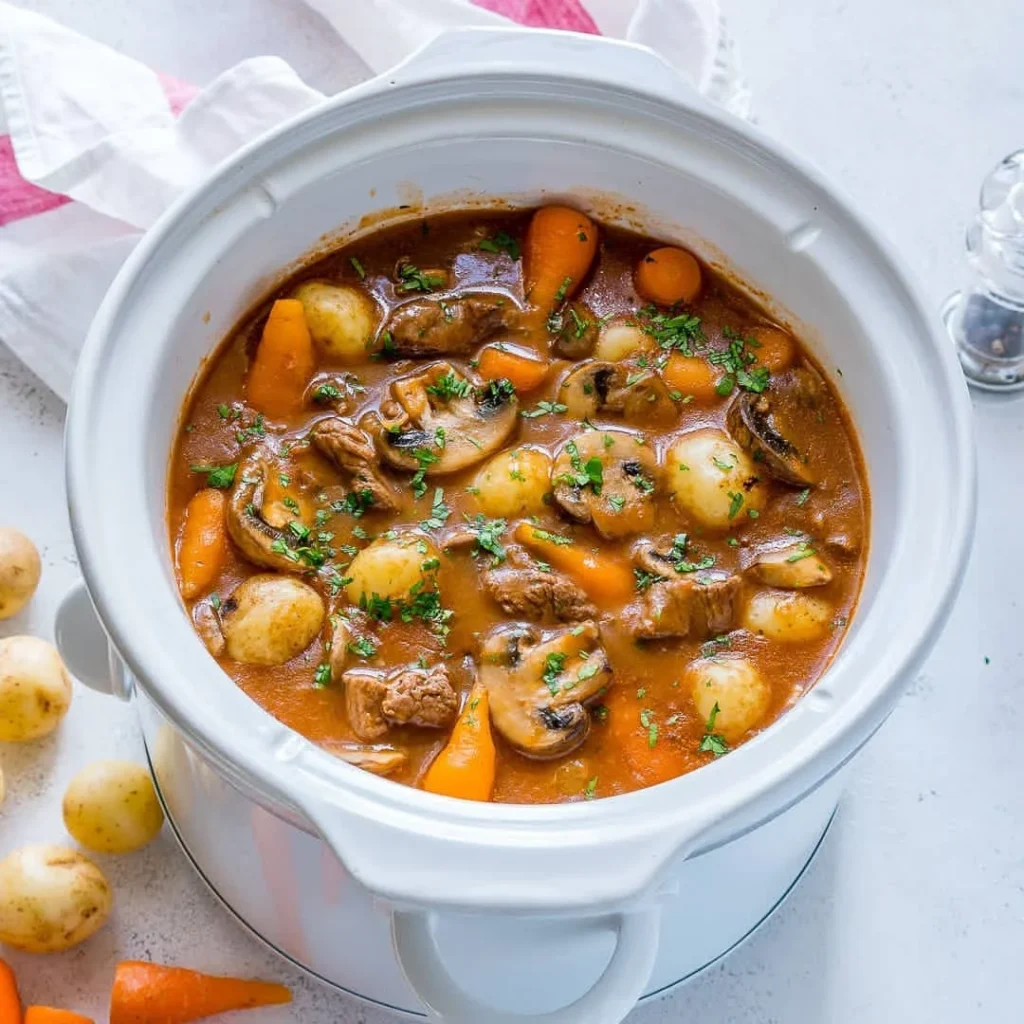 Hearty and wholesome, this slow cooker beef stew is comfort in a bowl. Tender beef chunks mingle with baby potatoes, carrots, and mushrooms in a rich, flavorful broth that fills the kitchen with warmth.