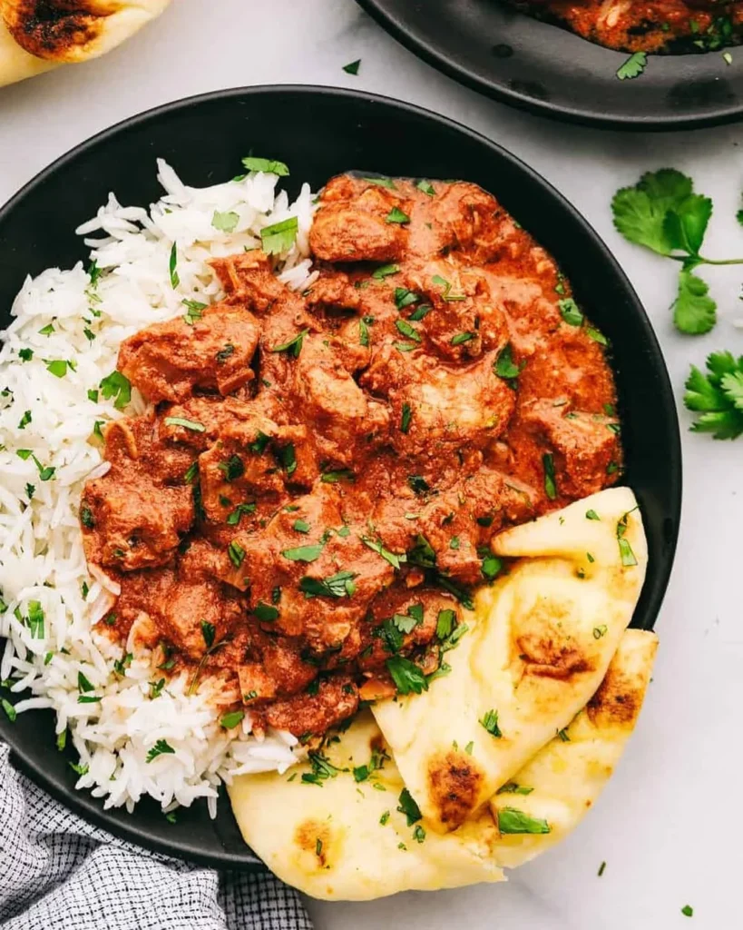 Slow cooker chicken tikka masala brings rich, aromatic flavors to your table with very little effort. Tender chicken pieces simmer slowly in a creamy tomato sauce infused with warm spices that fill the kitchen with an inviting aroma. The sauce turns velvety and flavorful, soaking into every bite of the chicken. Served alongside fluffy basmati rice and soft naan bread, it’s a cozy meal that feels both comforting and special. Fresh cilantro on top adds a final burst of freshness and color.