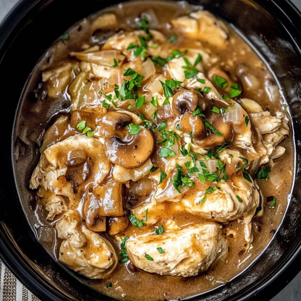 Tender chicken cooked low and slow in a rich mushroom gravy makes this comforting dinner effortless and full of deep, savory flavor. Perfect served over mashed potatoes, rice, or egg noodles.