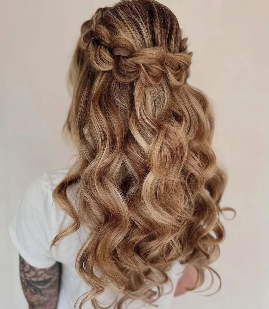 This loose braided half-up style is perfect for a day spent cruising, offering a relaxed yet stylish vibe. The soft waves cascade down, framing the face beautifully, while the intricate braid adds a touch of bohemian elegance. The combination of curls and braids brings out an effortless beachy look, ideal for those scenic moments on deck or casual outings during the cruise.