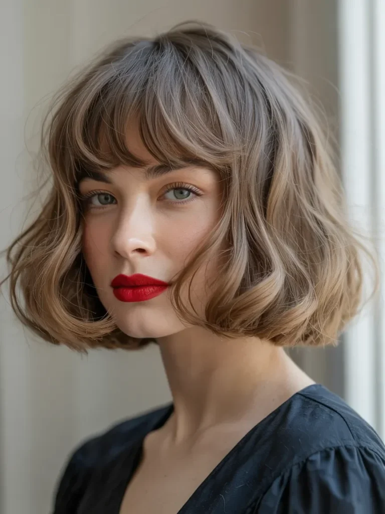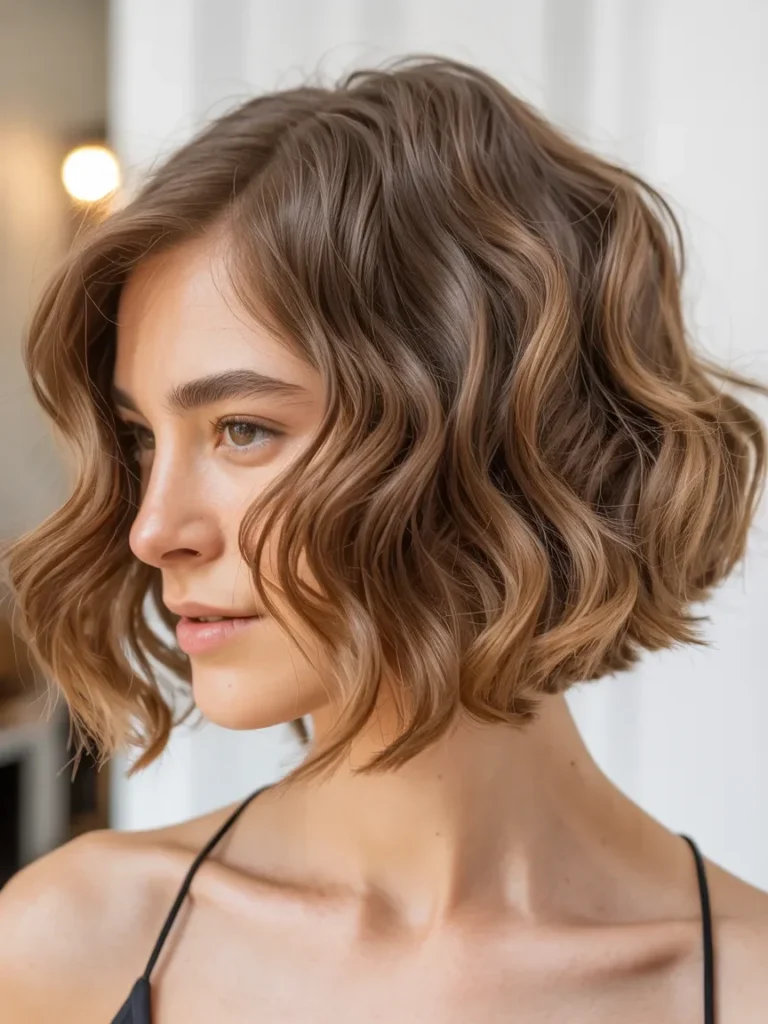 This soft wavy bob is a charming choice in cute short hair styles for women who love texture and movement. Gentle curls fall around the jawline, creating a flattering shape that feels light and modern.