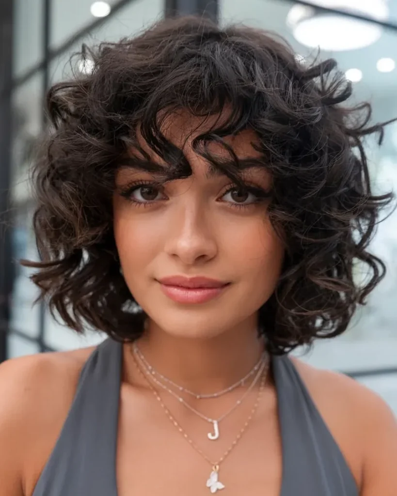 This curly shag bob adds playful energy to cute short hair styles for women who love texture and personality. Soft layered curls frame the face, creating movement and a lively shape that feels fresh and modern.