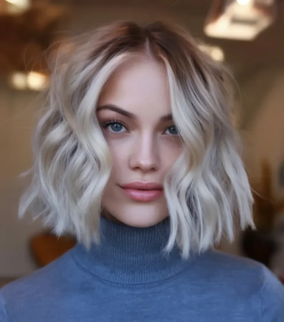This soft wavy blonde bob adds effortless charm to cute short hair styles for women who love texture and movement. Loose waves frame the face gently, creating a relaxed yet polished appearance that feels modern and fresh.
