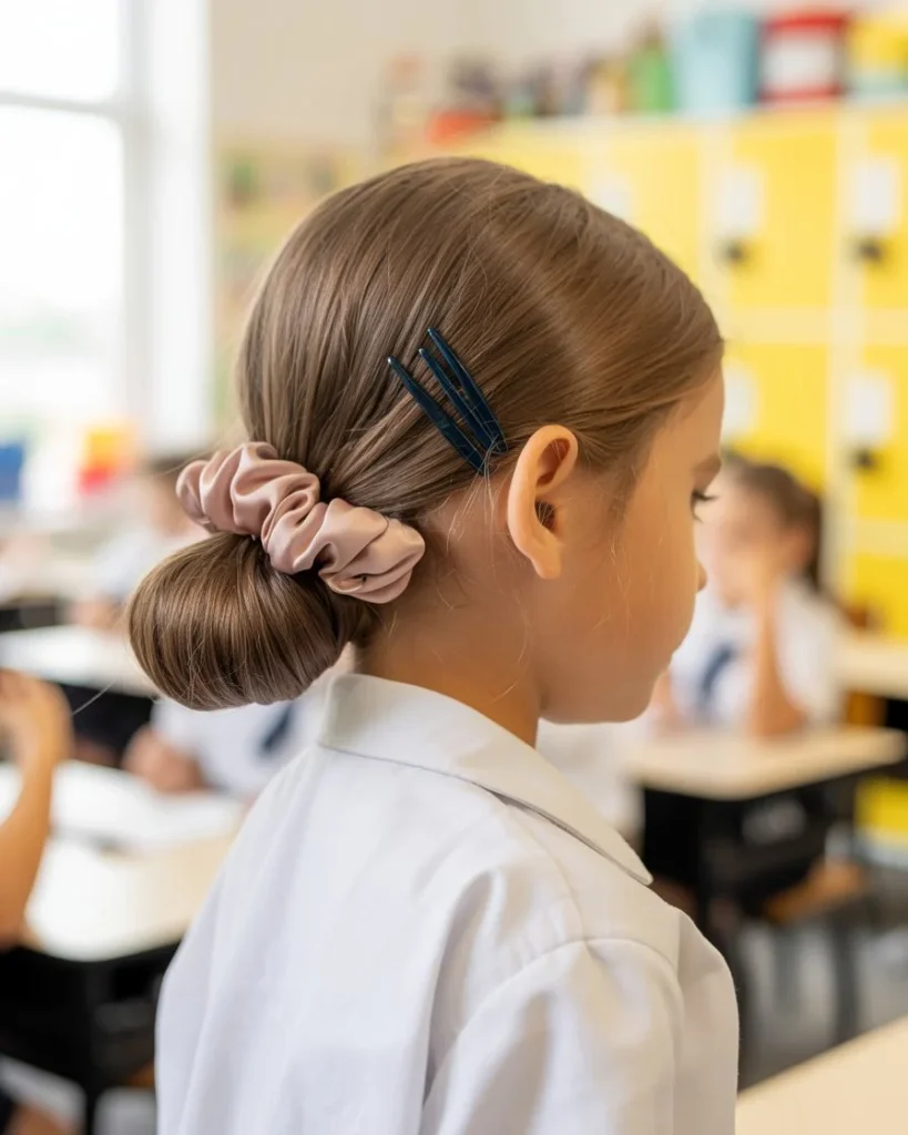 Wrap a satin scrunchie around the bun for comfort during long school days.