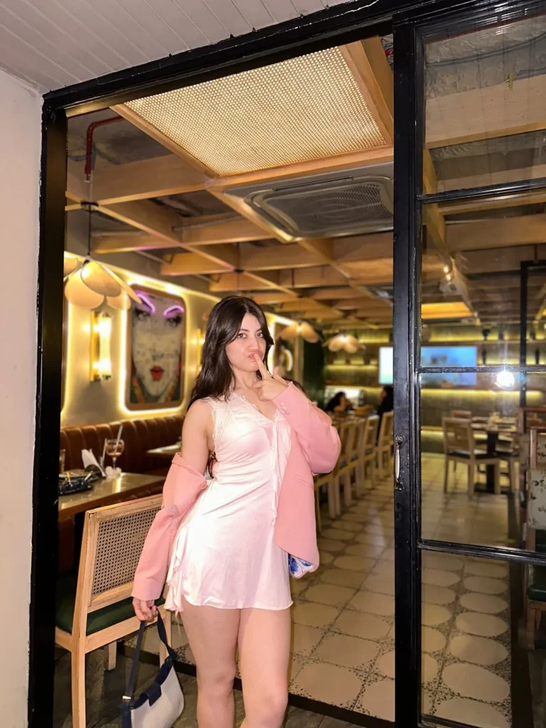 Sleek hair and polished makeup complete the style, creating a balance between glamour and composure. This outfit works well for upscale dinners, rooftop restaurants, or nights when you want your fashion choice to feel expressive and stylish in the most natural way.