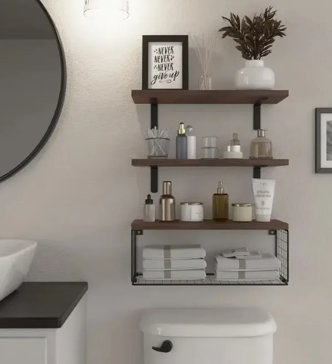 Bathrooms are humid environments, so material choice matters. Wood shelves should be sealed to protect against moisture. Metal shelves should be rust resistant.
