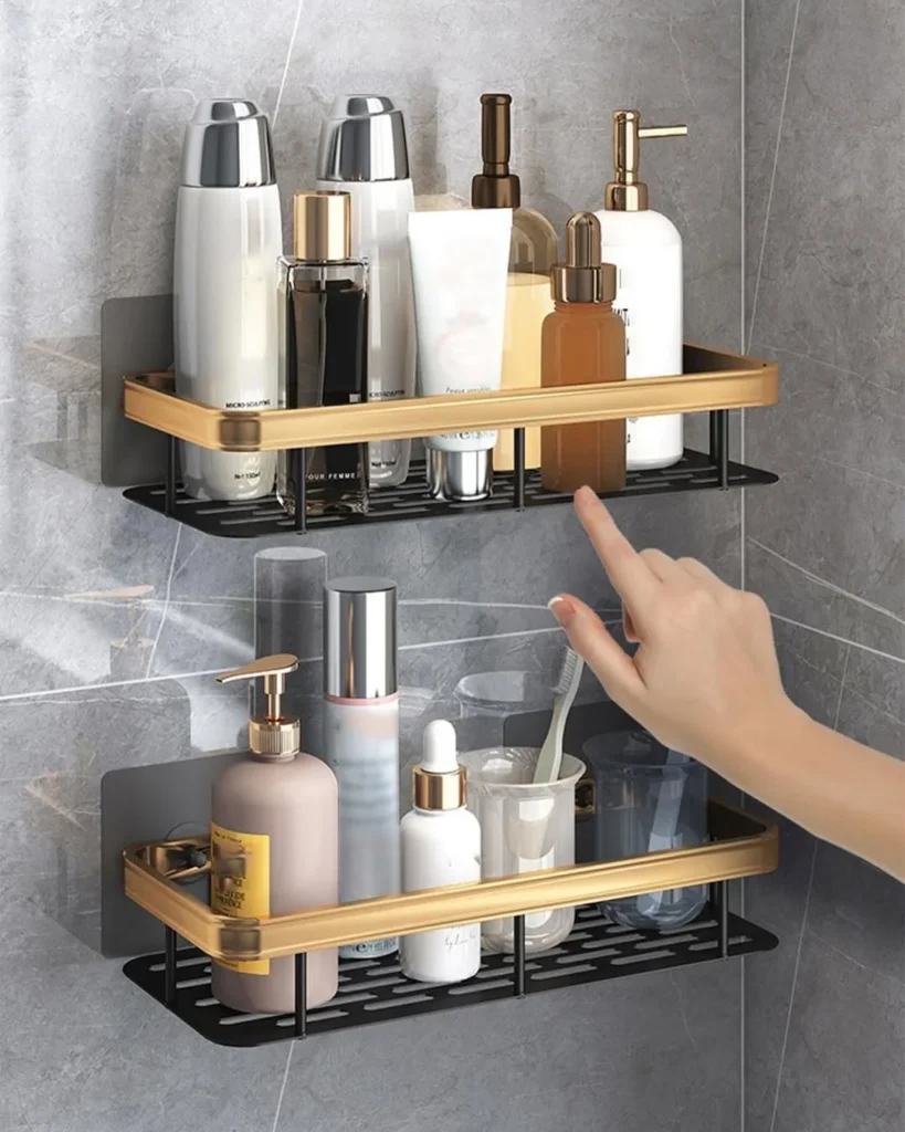Smart spacing allows bottles, pumps, and skincare essentials to stay organized without cluttering the space. A raised edge design helps prevent items from slipping, which makes these shelves practical for wet areas.
