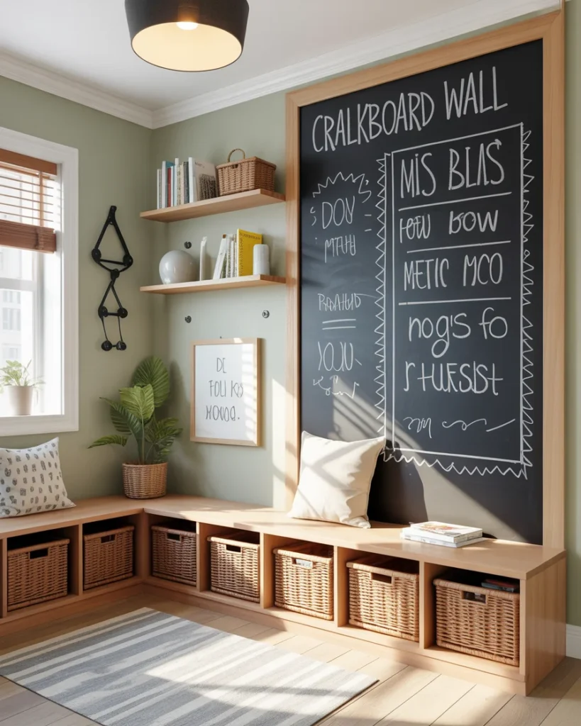 For creative minds, a chalkboard or whiteboard accent wall is both functional and stylish. It’s perfect for drawing, jotting down goals, or expressing thoughts freely.