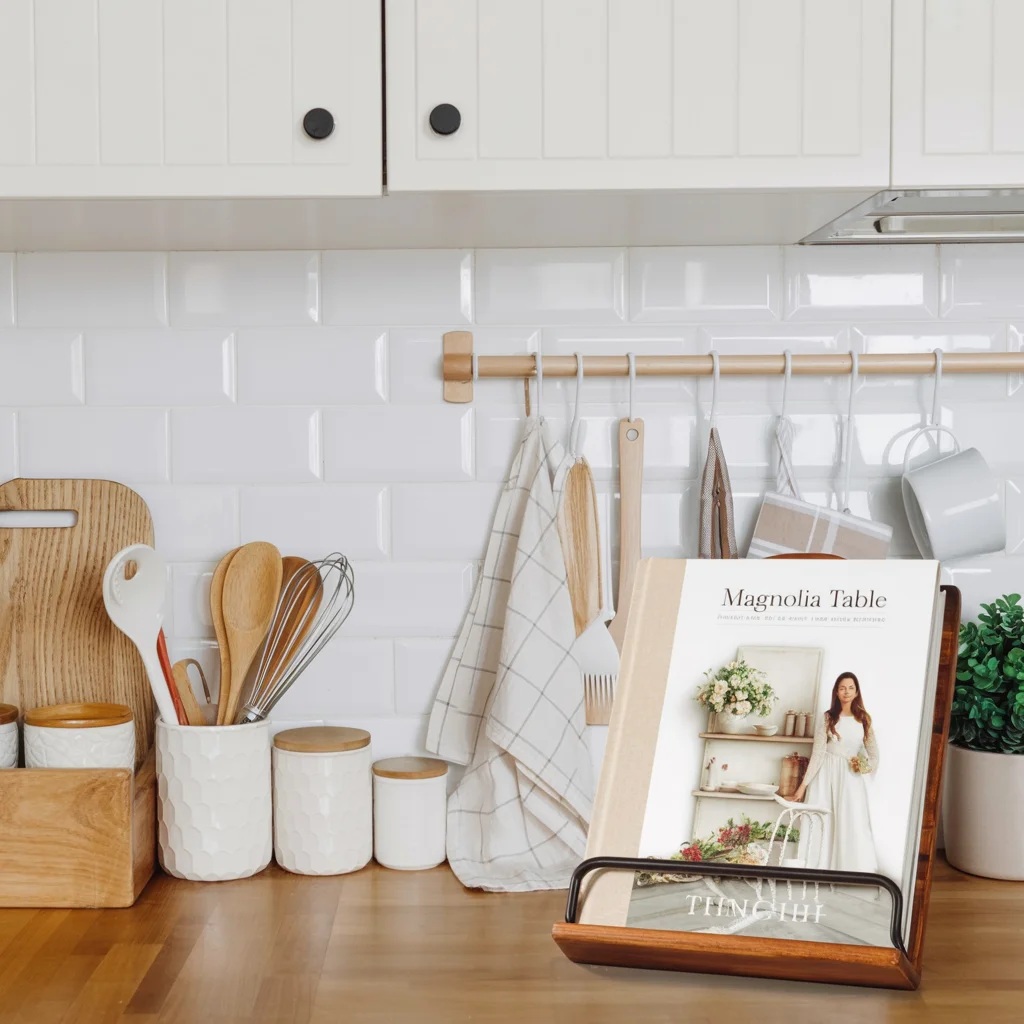 A small stack of cookbooks adds personality and height to kitchen counters. Choose books with beautiful covers to double as décor.