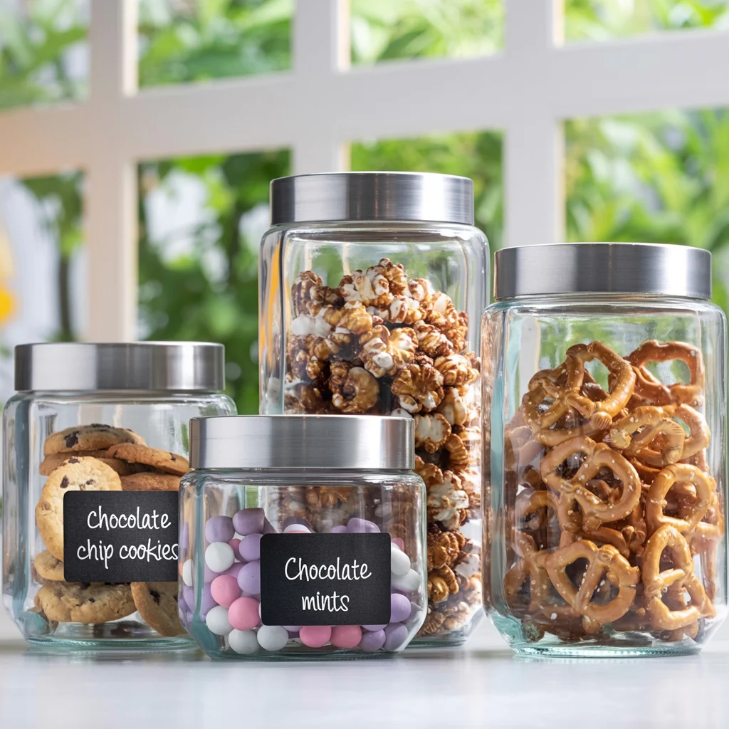 Use decorative jars to store everyday items like pasta, utensils, or snacks. Clear glass jars keep things visually light, while ceramic jars add warmth.