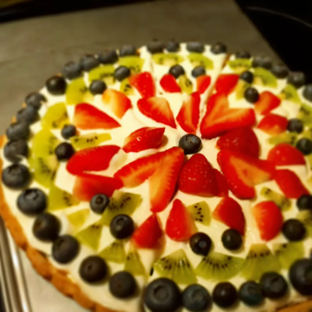 This Grinch-inspired fruit pizza is a creative and festive way to celebrate the season. A fresh, crunchy base is topped with a smooth, creamy layer, followed by an artful arrangement of colorful fruits. Strawberries, kiwi, and blueberries are strategically placed to form vibrant sections, mimicking the Grinch’s mischievous grin.