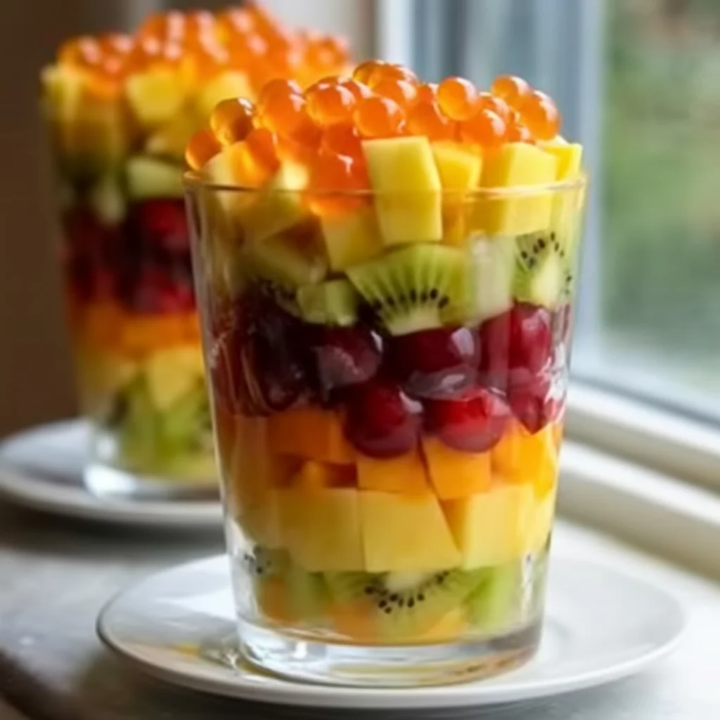 These vibrant Grinch fruit parfaits are a delightful and healthy way to embrace the holiday season. Layered in clear glasses, the fruit parfaits feature colorful fruits like kiwi, grapes, and mango, stacked in a visually appealing pattern.