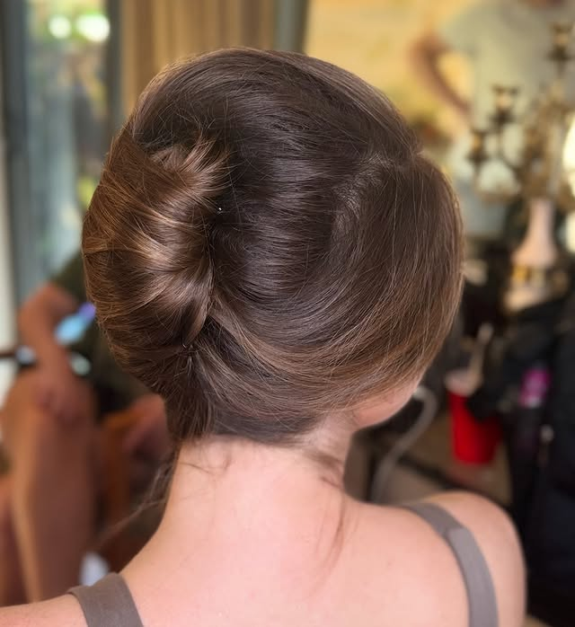 For an elegant, timeless look, a French twist is a perfect choice. This hairstyle is sophisticated and works well with both casual and formal off-the-shoulder dresses. It draws attention to the neckline while keeping your hair neatly in place.