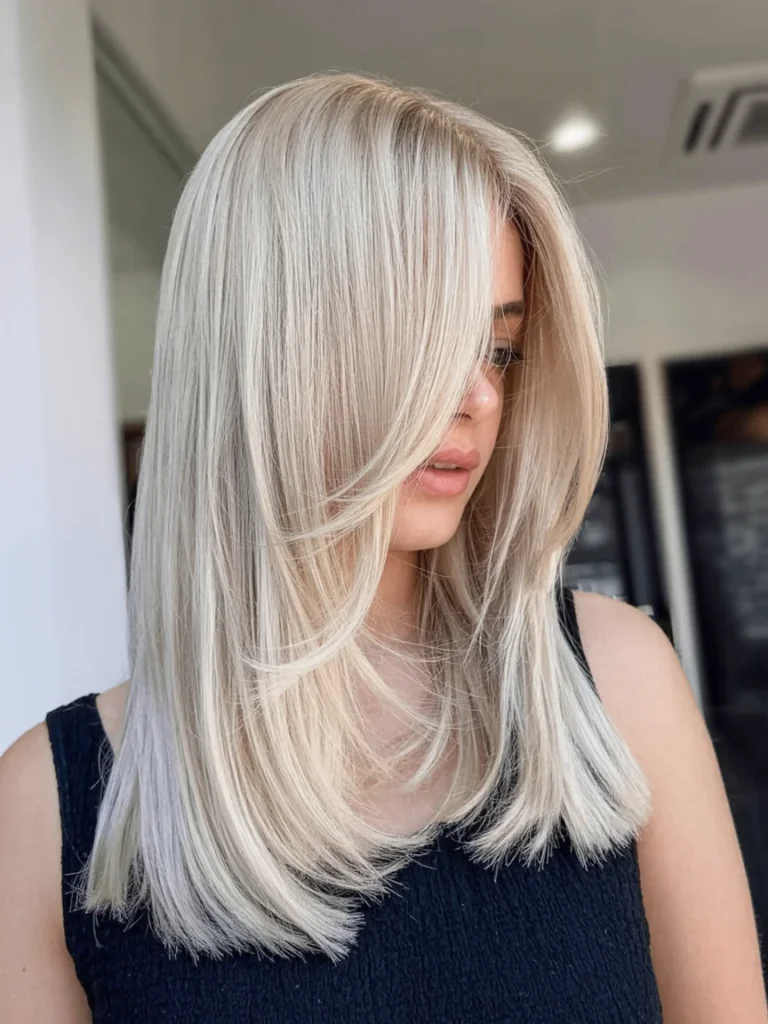 For a minimalist yet chic look, sleek straight hair complements an off-the-shoulder dress beautifully. This hairstyle is particularly great for modern, structured dresses where you want the focus to remain on the outfit.