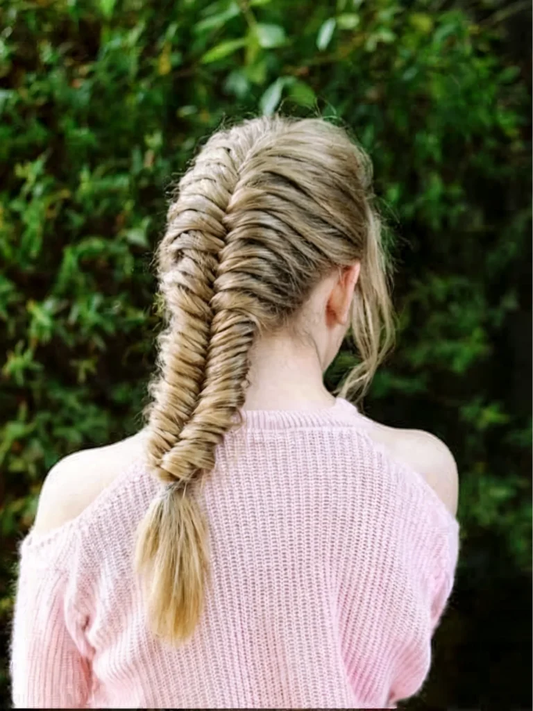 A fishtail braid adds an intricate yet easy-to-do touch to your look, perfectly complementing an off-the-shoulder dress. This hairstyle can be worn for both casual and more formal occasions.