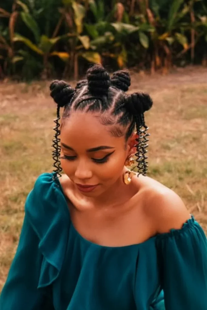6. Bantu Knot Puffs with Defined Curls