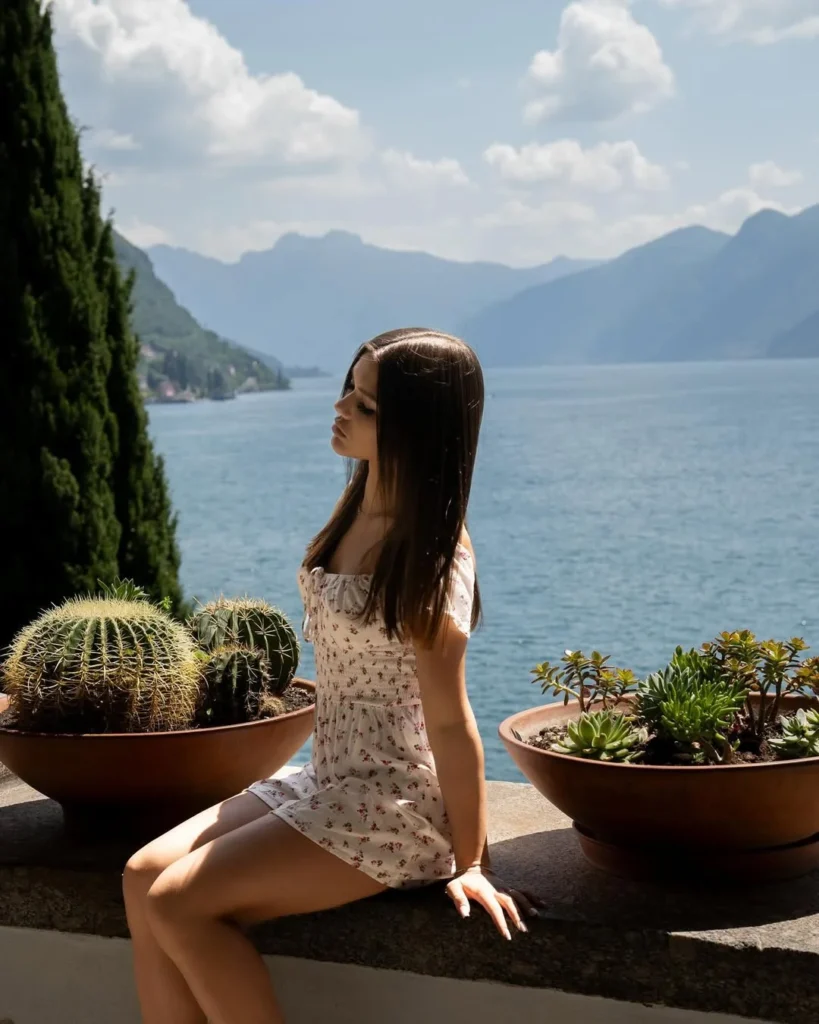 The lightweight fabric flows effortlessly, making it the perfect outfit for warm Italian weather. Sitting by the serene lake or enjoying the picturesque views, this dress ensures comfort while staying stylish.