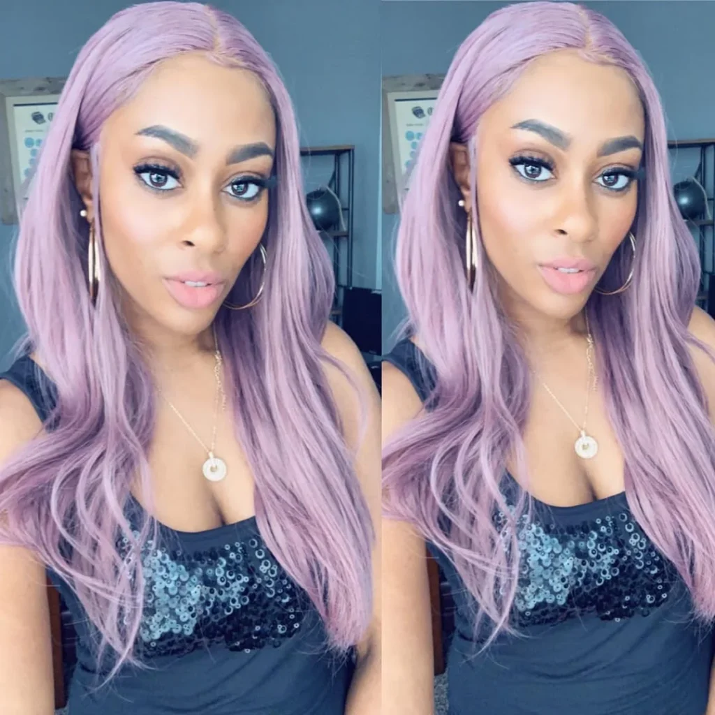 Soft pastel pink tones give this lace frontal hairstyle a bold yet graceful personality. Long straight strands fall smoothly over the shoulders, creating a clean silhouette that feels fresh and modern. A precise middle part enhances facial symmetry while allowing the lace to blend naturally into the hairline.