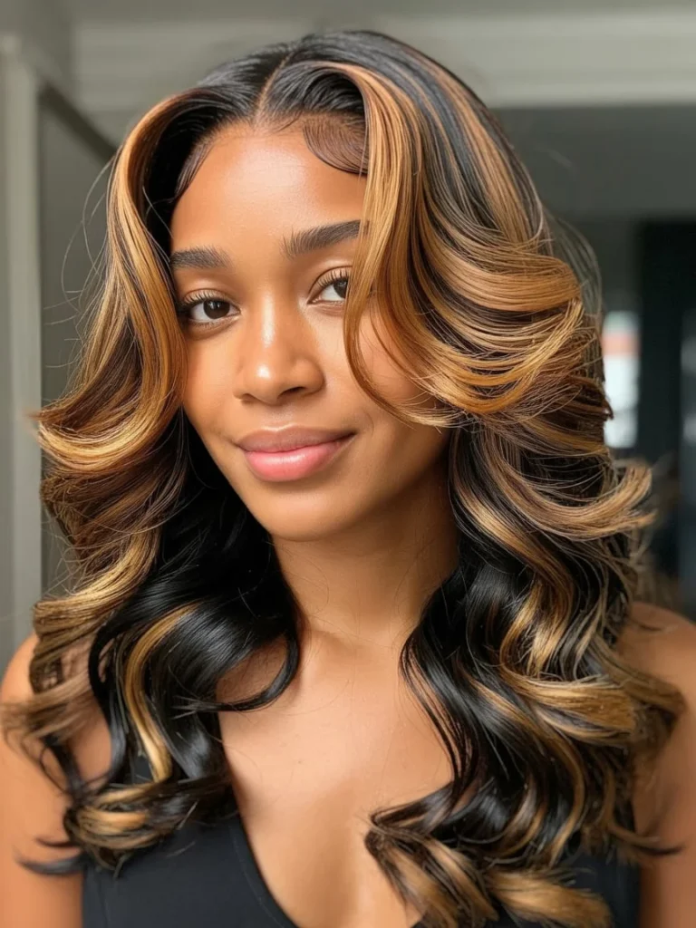 This hairstyle works well for parties, dinners, or special gatherings where you want something elegant yet relaxed. The balance of color and texture makes this lace frontal a standout choice for Black women who enjoy soft glamour with modern flair.