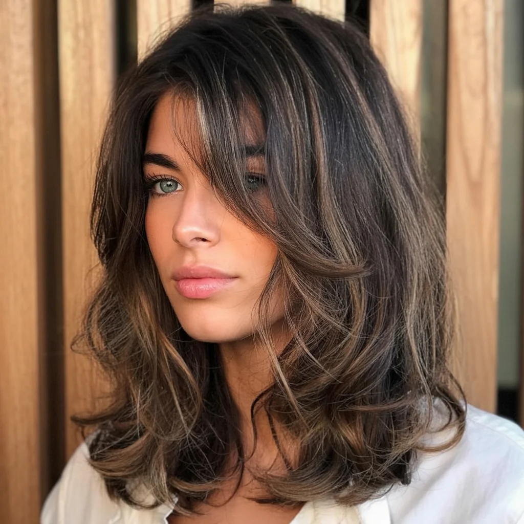 Feathered cuts bring softness and flow to medium-length hair. The airy layers frame your face while creating a graceful silhouette that moves naturally. It’s ideal for women who prefer lightweight styles with a touch of sophistication.