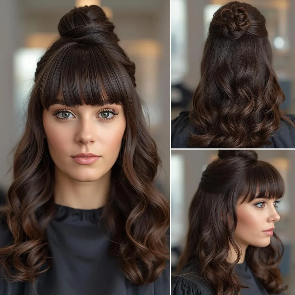 In this article, we’ll explore 15 stunning half up half down prom hairstyles with curtain bangs, each offering a unique vibe, from classic elegance to modern romance.