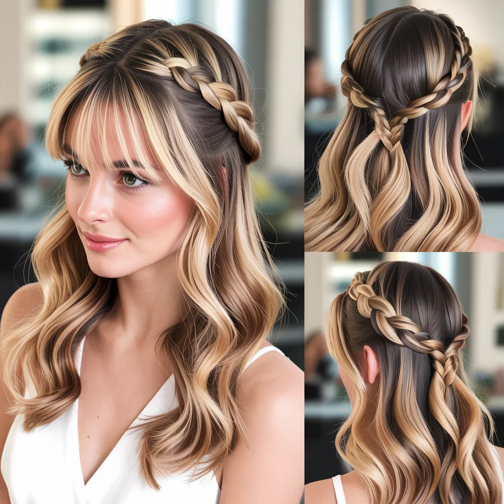 Adding a braid to the half-up section creates visual interest while keeping the hairstyle elegant. The braid can be loose and bohemian or tight and refined.