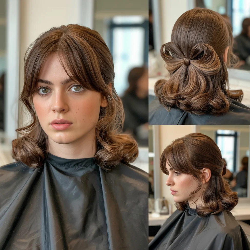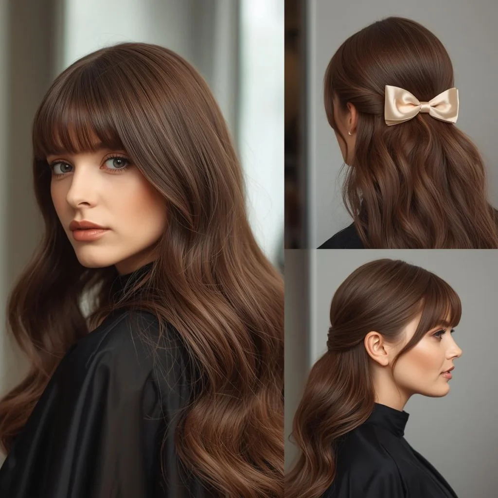 8. Half Up Bow Style with Curtain Bangs