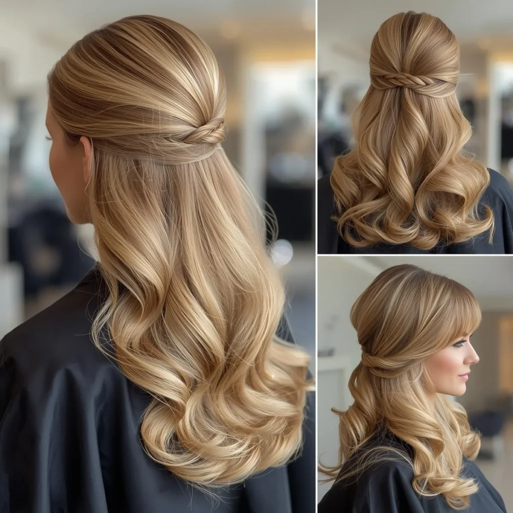 11. Half Up Half Down with Soft Hollywood Waves