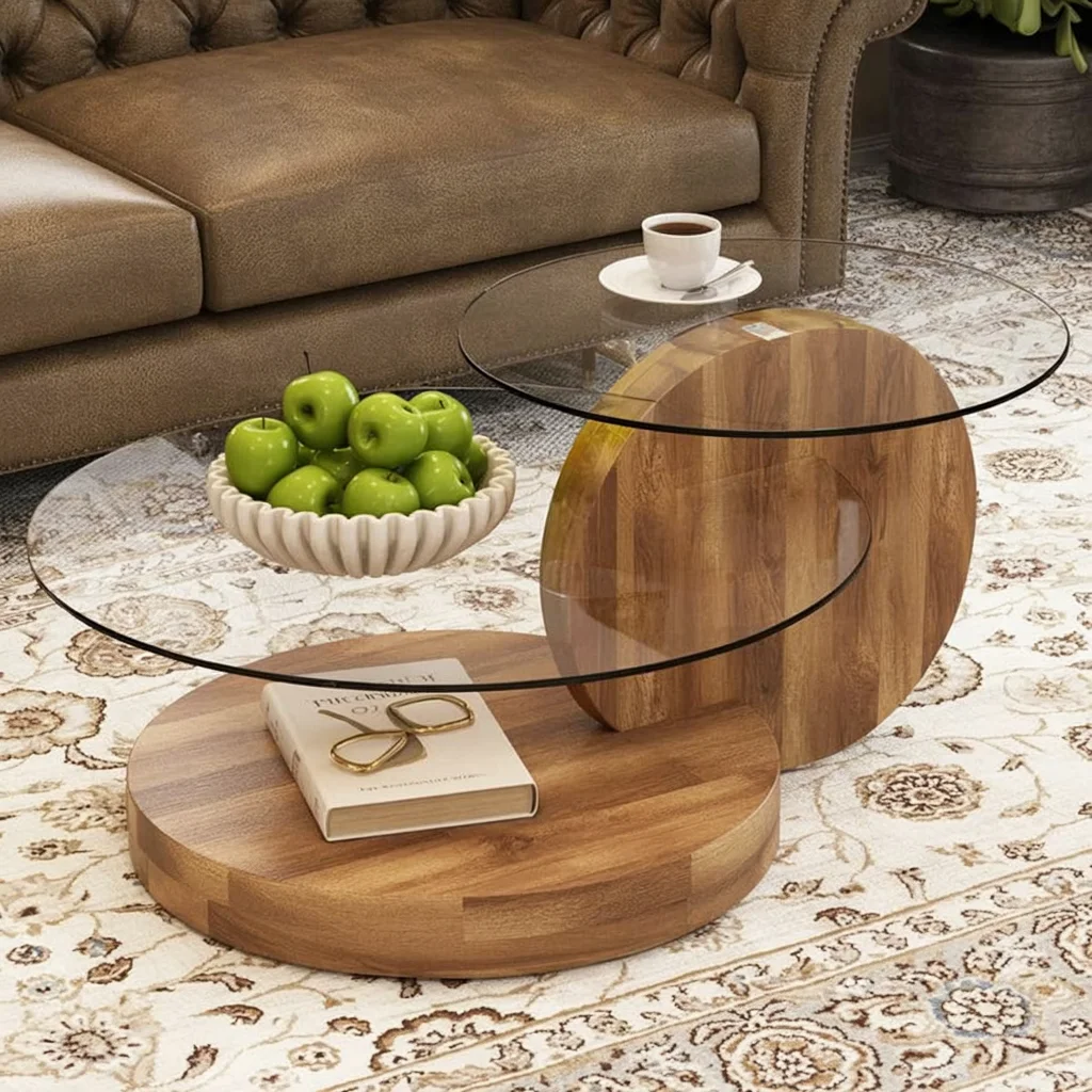 2. Wood and Glass Round Coffee Table