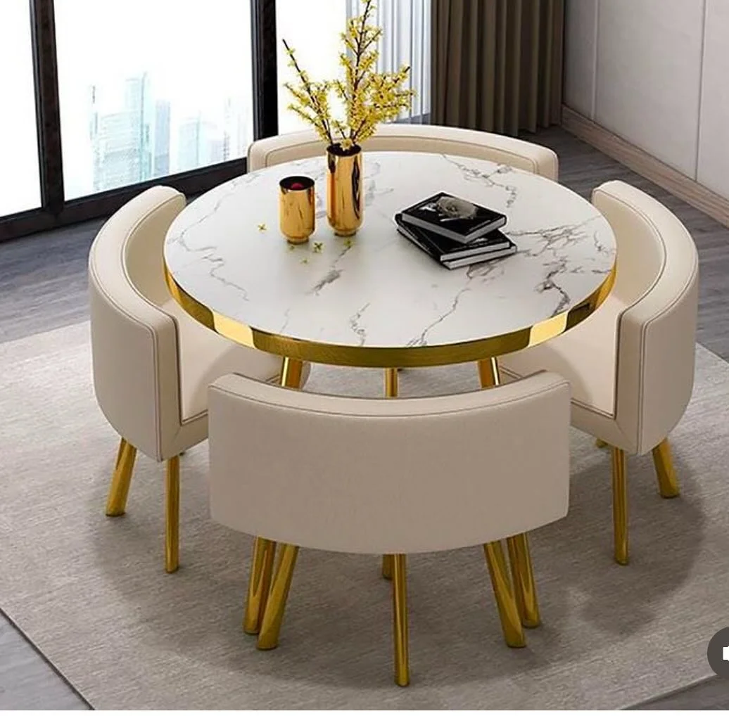 1. Modern Gold-Accent Round Dining Setup