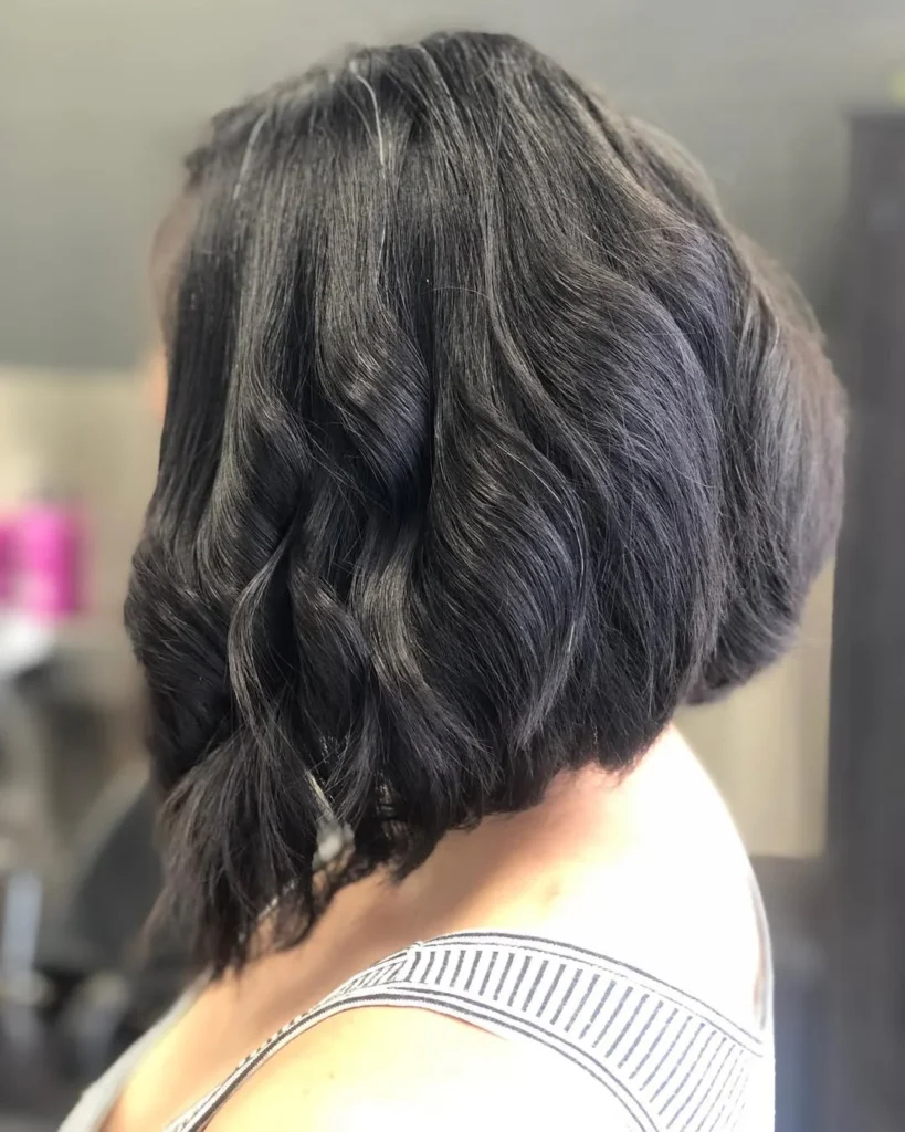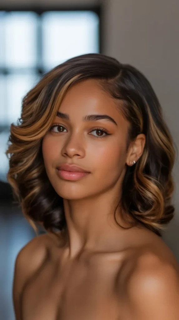 The gentle waves frame the face beautifully, highlighting the cheekbones and jawline. Ideal for women looking to add a modern twist to their classic bob, this style gives off an elevated, yet low-maintenance vibe. Whether for work or a night out, it’s a hairstyle that brings elegance with a hint of fun.