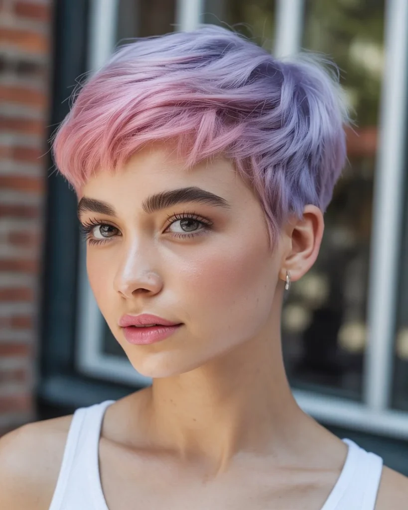 Color does not have to shout to feel expressive. A pastel pixie in rose, lavender, mint, or baby blue gives a velvet finish that looks dreamy on short hair.