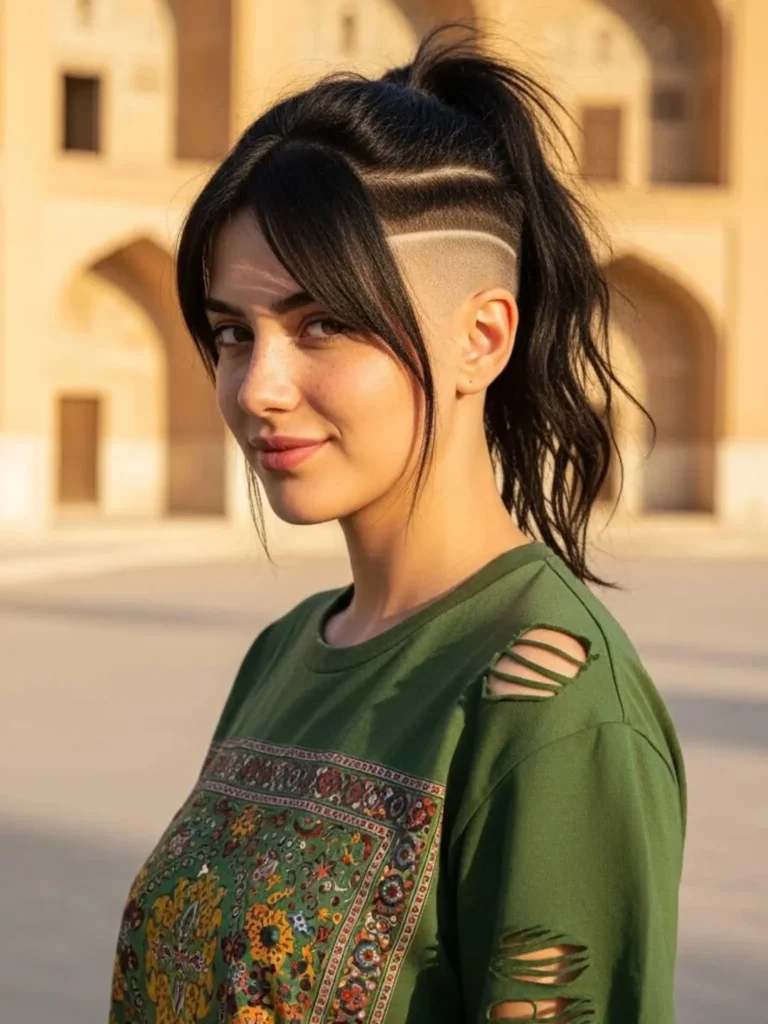 The contrast of silky length against the buzzed sides keeps the shape modern. Add it to your list of 15 Short Funky Pixie Haircut Ideas For A Bold New Look and expect comments from friends and strangers alike.