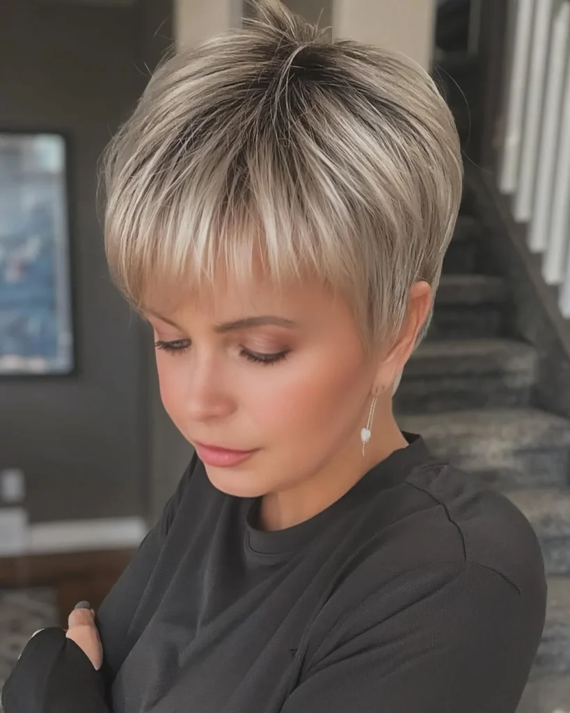 This is one of the most versatile short funky pixie haircut ideas because you can sweep the fringe cleanly for work, then ruffle it for night.