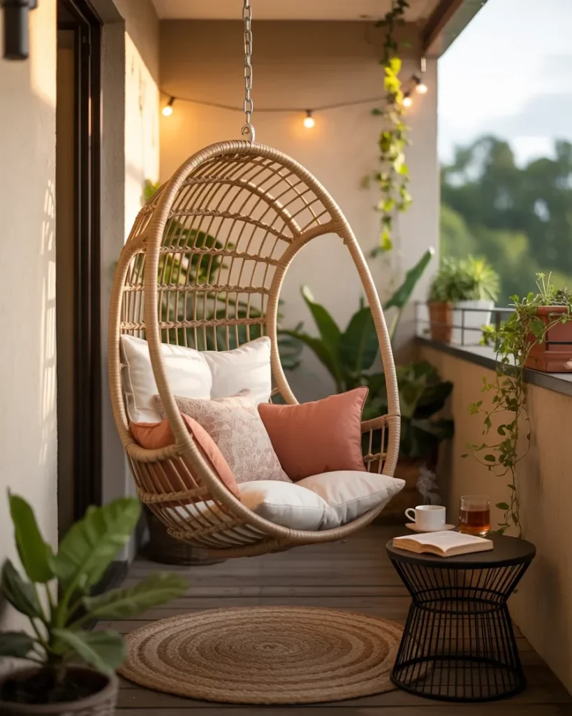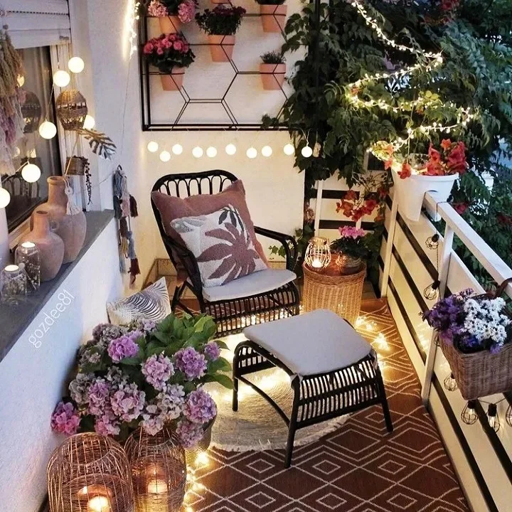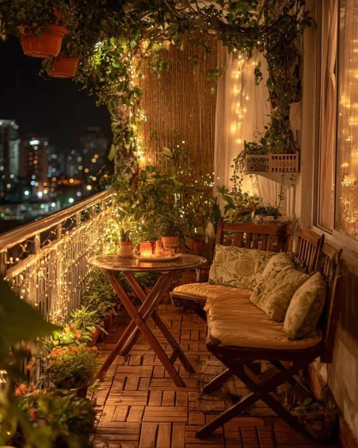With the right lighting and décor, even a small balcony can become a charming outdoor retreat, ideal for enjoying quiet nights or entertaining friends.