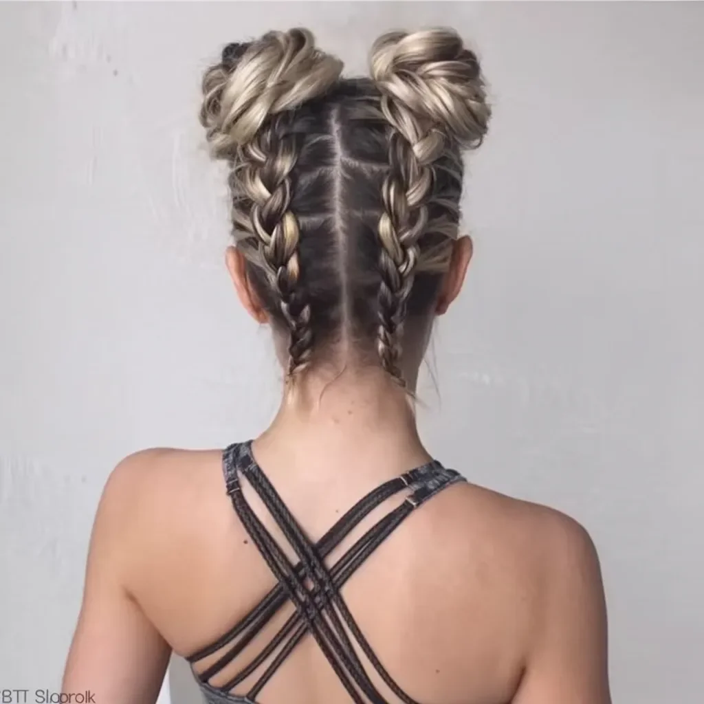 4. Double Braids with Buns