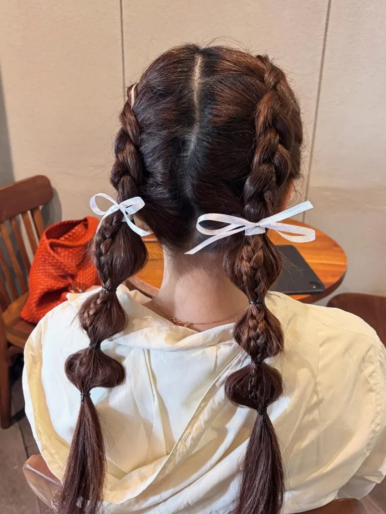 5. Braided Pigtails with Ribbons