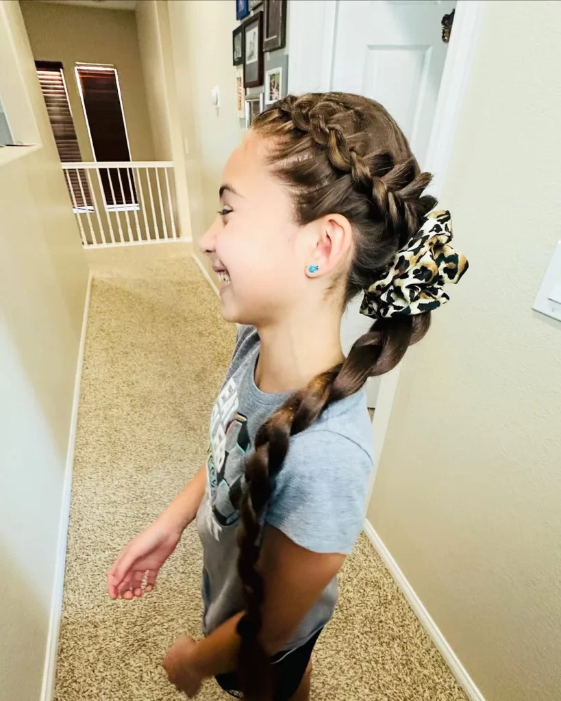 It’s easy to create and maintain, perfect for women who want to feel secure and look great while engaging in any activity. The braided pigtails with scrunchie are a versatile option for all types of workouts and casual outings.