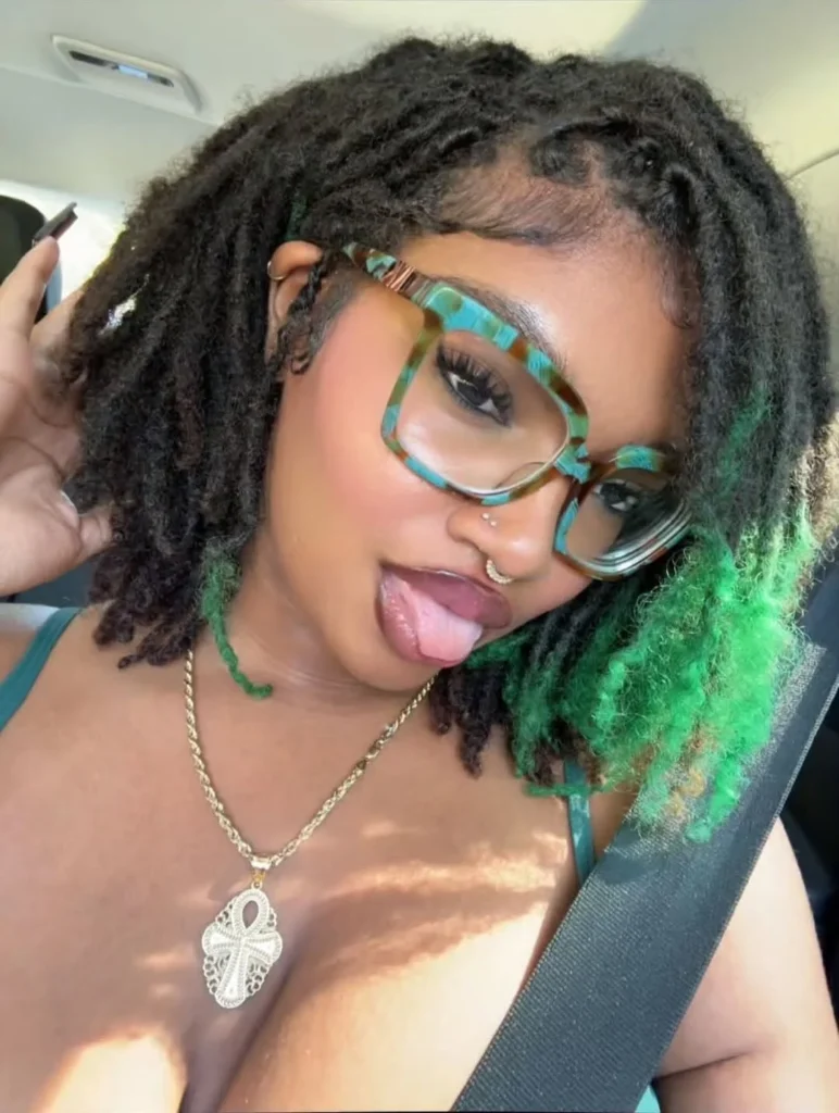 The locs are styled loosely for a natural flow, while the side part and baby hairs soften the look and frame the face effortlessly. Paired with stylish glasses and confident attitude, this hairstyle radiates individuality and fun.