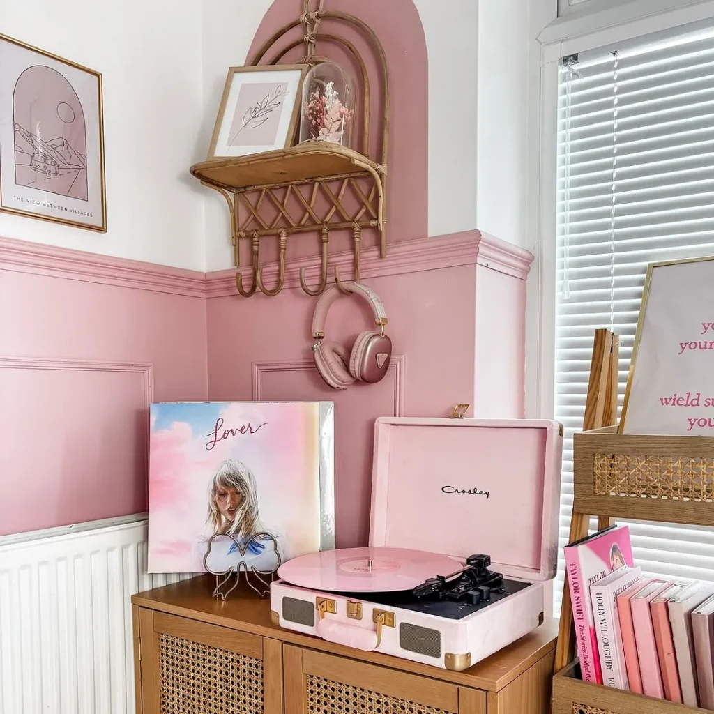 9. Chic Pink and Vintage Record Player Corner