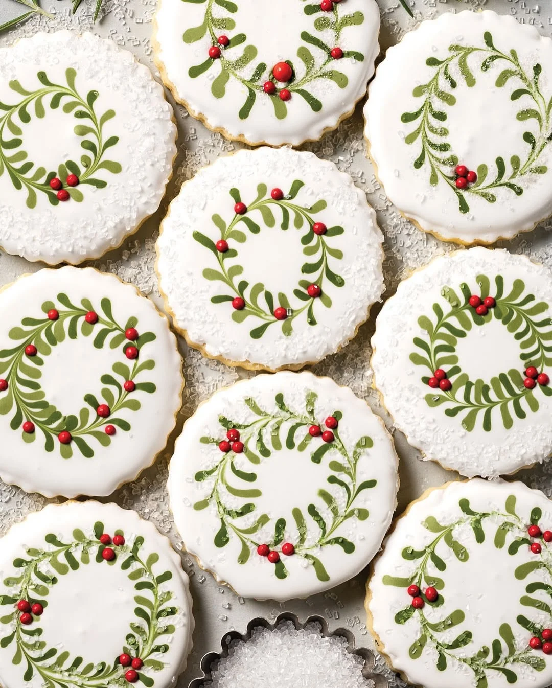 Every cookie shows a slightly different wreath pattern, which adds a sweet homemade touch. The textured sugar around the edges shines softly, creating a snowy look that feels cozy for fall gatherings. Friends and family will enjoy these cookies not only for their taste but also for the simple joy they bring to the table.