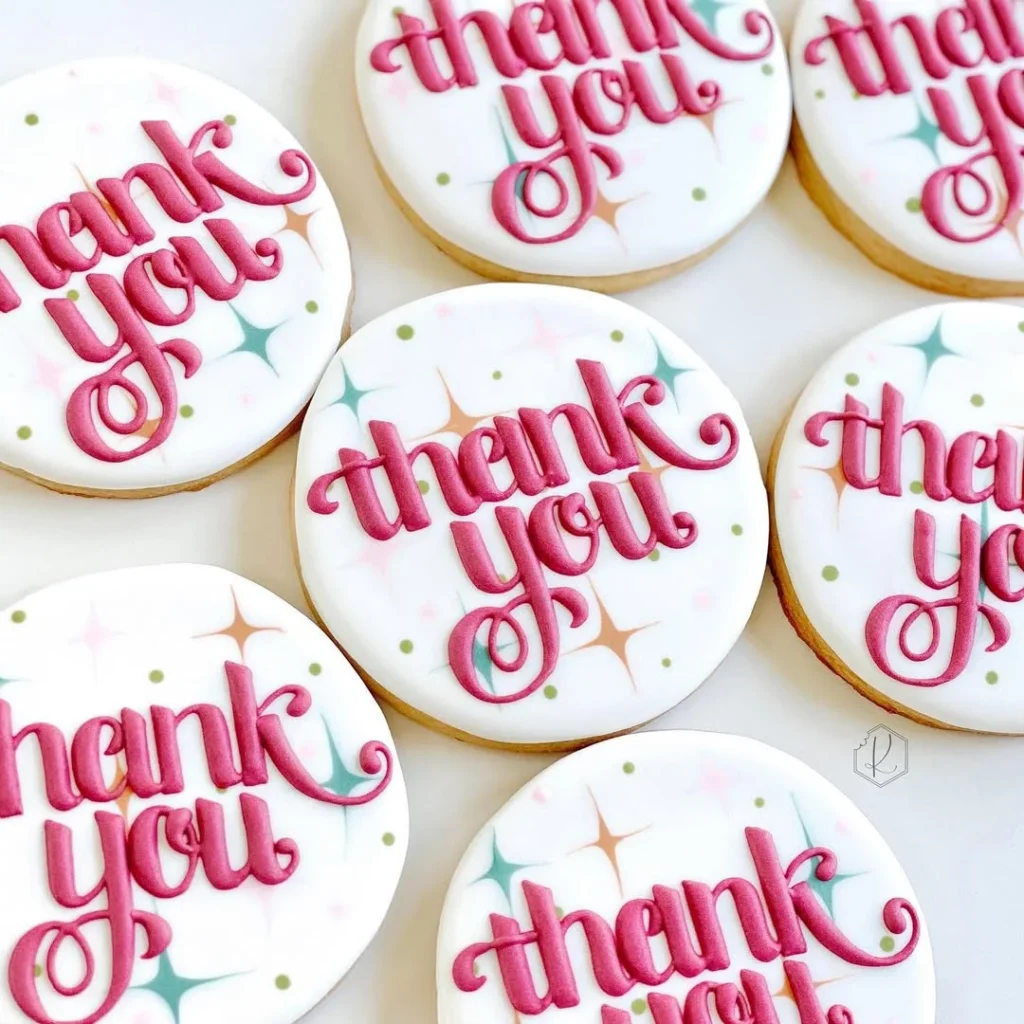 Guests will love how playful and thoughtful these cookies look. They work well as table favors, hostess gifts, or a small treat to show gratitude during the holiday. Every detail, from the raised lettering to the soft dotted patterns, adds a handmade touch that feels warm and sincere.
