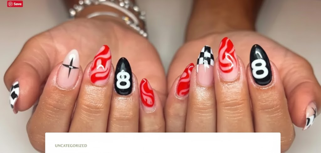This striking Treaty Oak Revival nails design is a perfect blend of bold, vintage vibes and contemporary edge. The red and black swirls on the nails mimic the ancient, twisting roots of the iconic tree, while the inclusion of the number “8” brings in a modern, graphic element. The checkered pattern on the accent nail adds a playful contrast, making the entire design a statement piece.